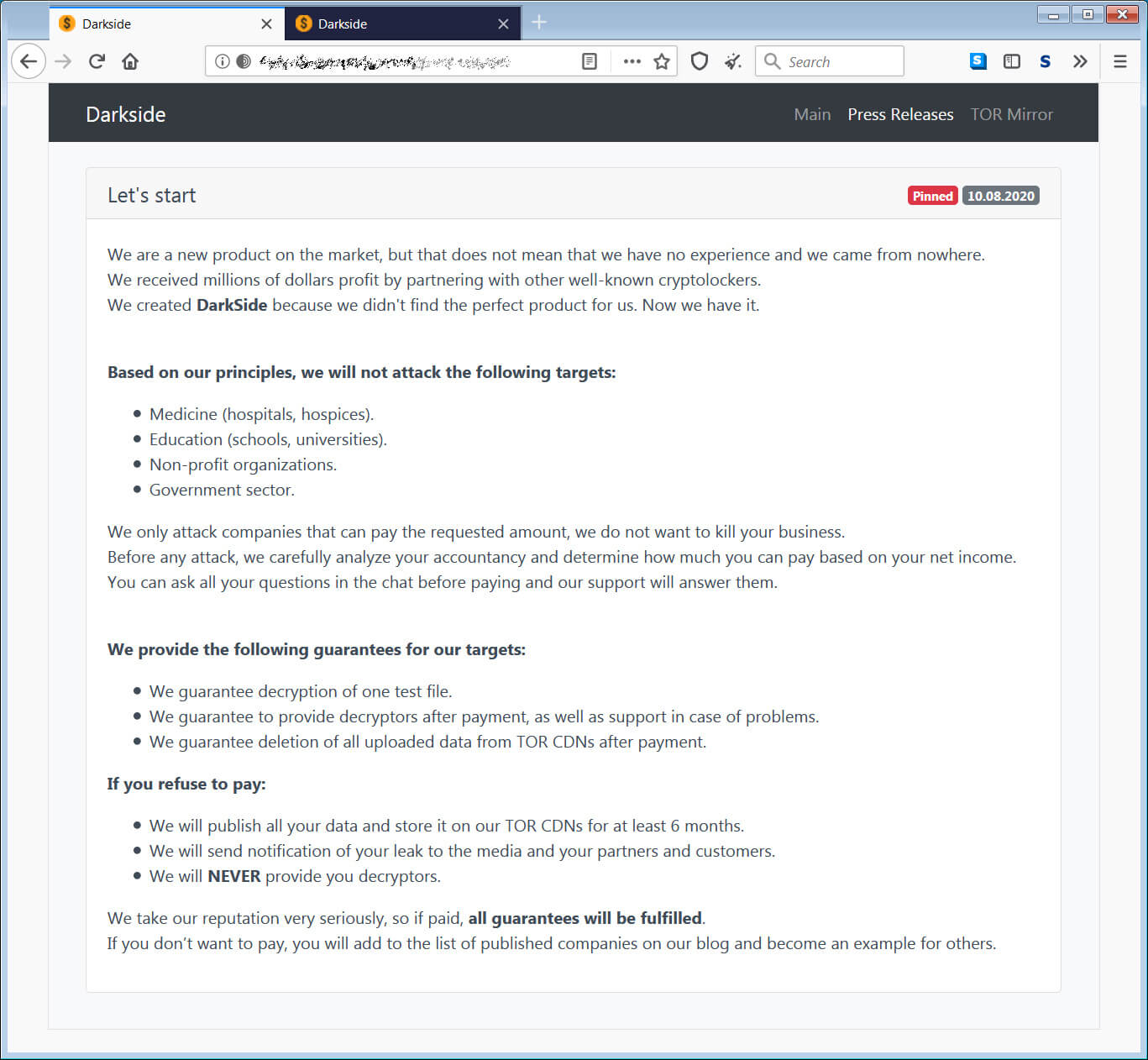 DarkSide claims that if a victim will not pay, all of the data will be released on their website for at least six months.