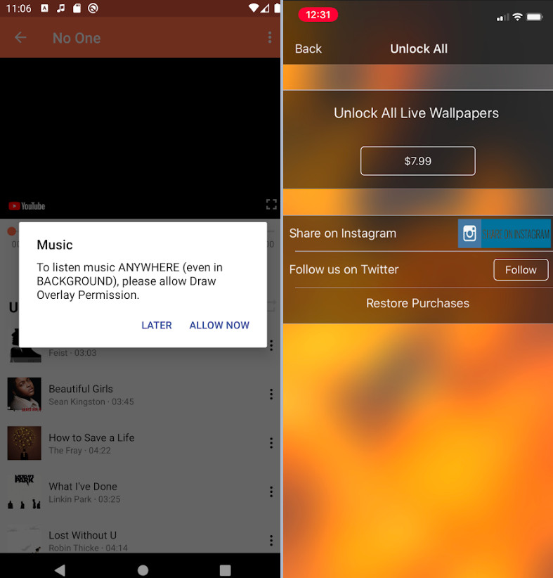 Even with good feedback, it is advised to decide whether the offer is worth the money when asked to pay for an extra function. It is very expensive to pay $8 for wallpapers, given that many legitimate applications do this for free and make money from good in-app ads.