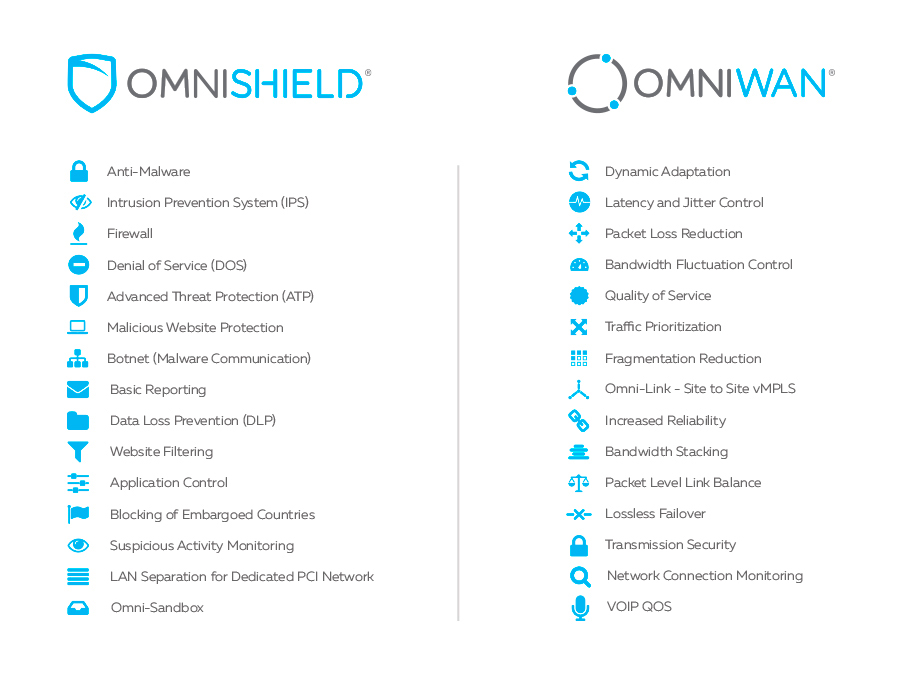 OmniNet specific CPE router that bridges local networks to OmniShield with OmniWAN service. Required for OmniWAN service.